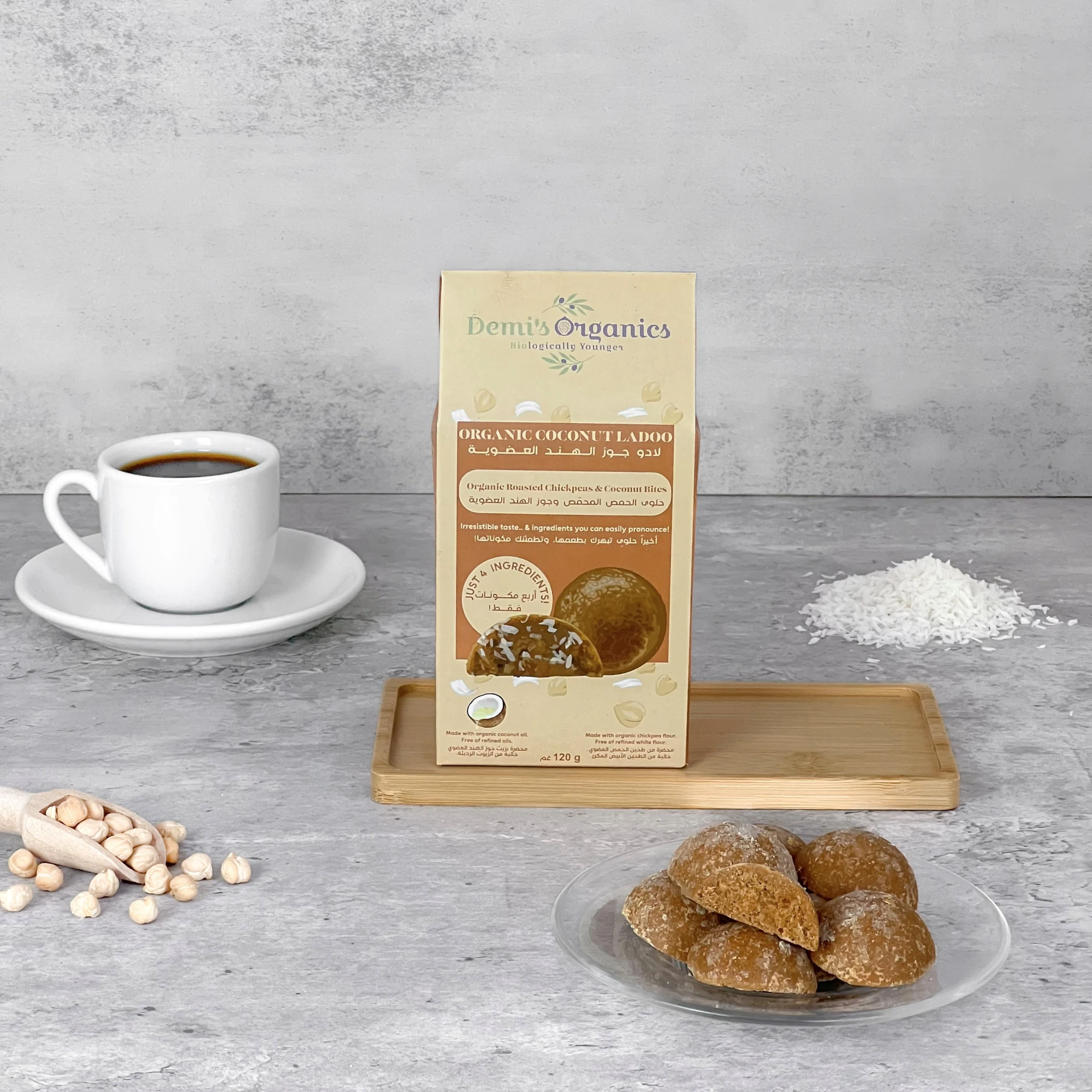 لادو جوز الهند العضوية (حلوى الحمص المحمّص وجوز الهند العضوية) | 120 جرام